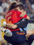 So it's extra time and the golden goal, and we don't have a forward other than young Luque who looks petrified. This was just supposed to be a quiet run out. A bit like signing up for the army cause it's better than being on the dole and a week later war is declared and you're dancing through the land mines in Kuwait. And now we're down to ten men, Albelda has gone off with an injury. He should never have come on, he is waiting for an operation on a groin strain and hurt himself again in the last match (or in the girlie bar afterwards). Luis Enrique is finished, he too is carrying an injury, and he is pushed up front with Luque playing on the right.